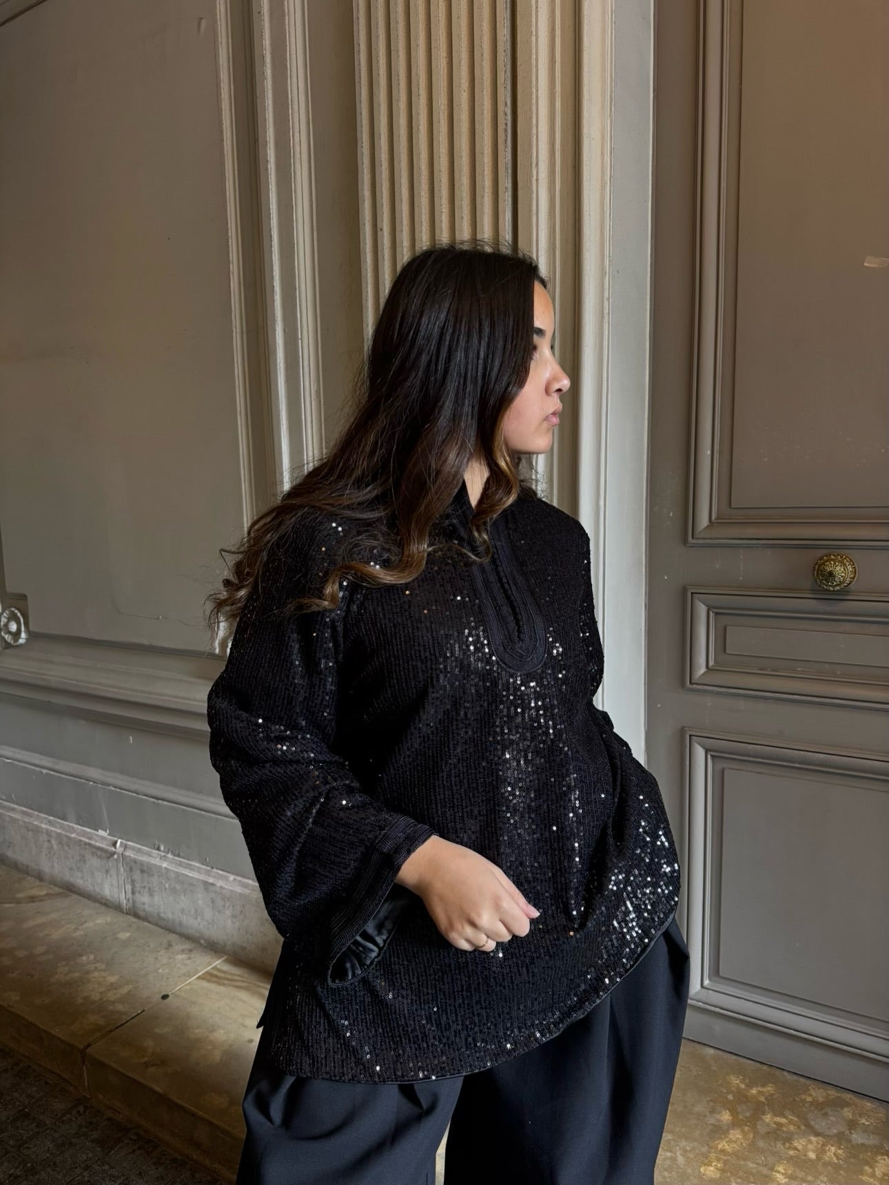 Ajoutez une touche de sophistication à votre garde-robe avec ce hoodie à manches larges, délicatement ornée de sfifa. Ce détail artisanal inspiré des traditions marocaines apporte une note de luxe discret, tandis que la coupe moderne et fluide des manches assure confort et aisance. parfait pour toutes les occasions, combine tradition et style contemporain, créant un look à la fois chic, unique et intemporel.