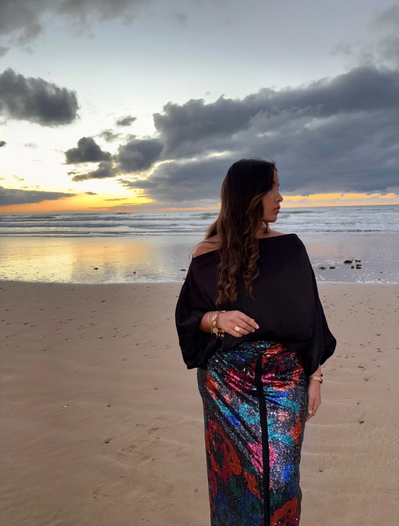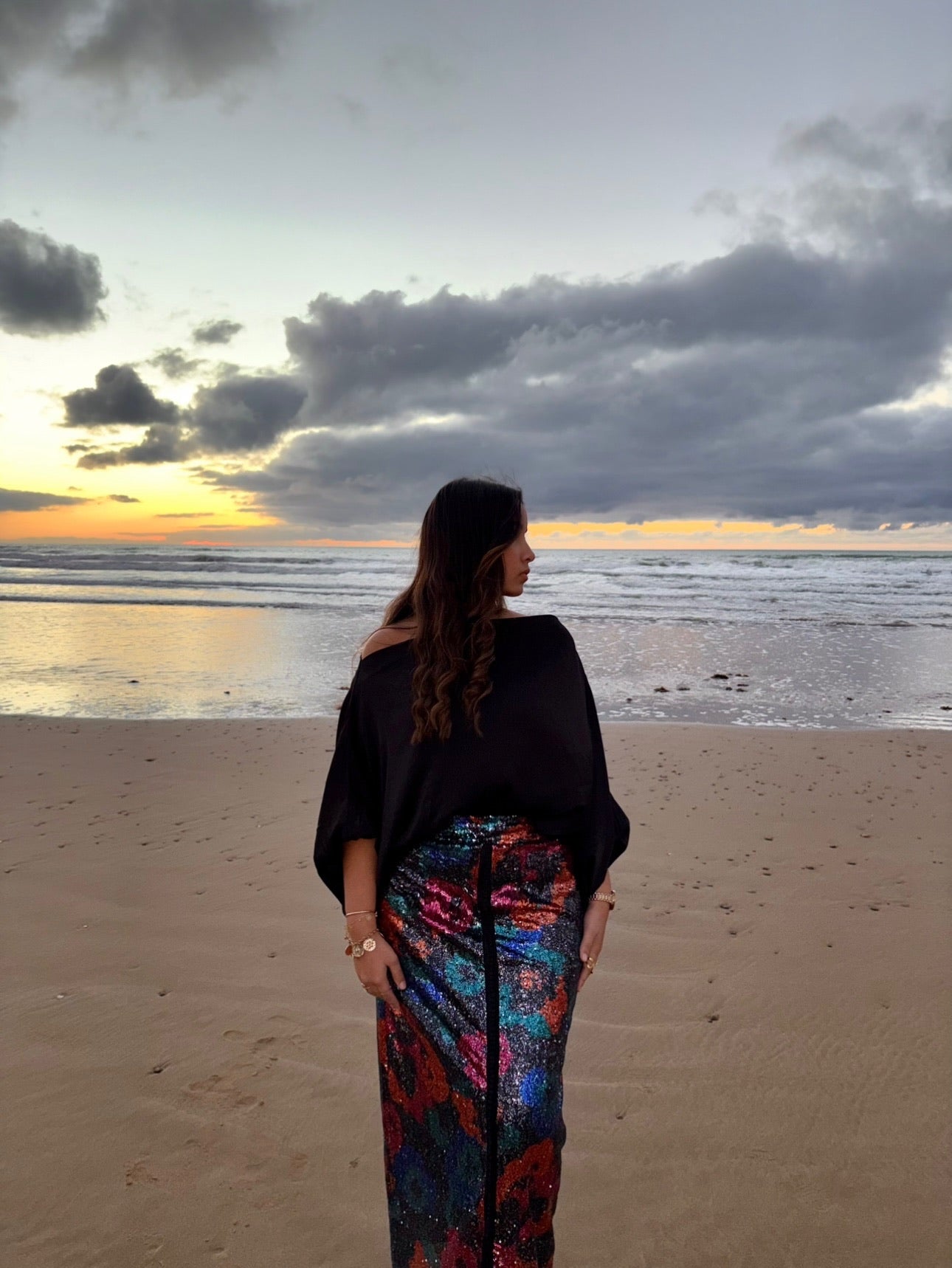 Notre jupe longue à paillette au design unique allie modernité et influences marocaine. Les détails ajoutent un charme authentique, mettant en valeur le travail artisanal tout en apportant une élégance discrète. La coupe légère assure un confort optimal, tandis que la couleur vibrante et les motifs audacieux apportent une touche de caractère à votre look. Idéale pour toutes occasions, cette jupe est un parfait mélange de tradition et style contemporain.